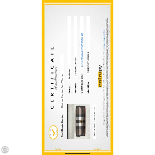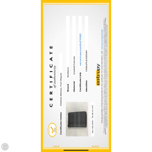 Wallet Luxury Designer By Burberry, Size: Medium