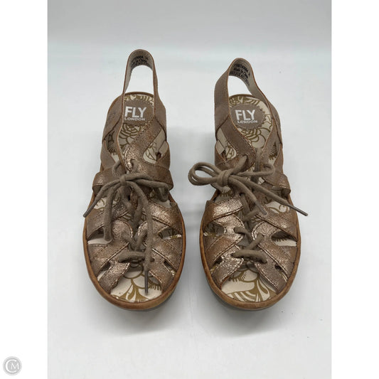 Sandals Heels Wedge By Fly London In Gold, Size: 5.5