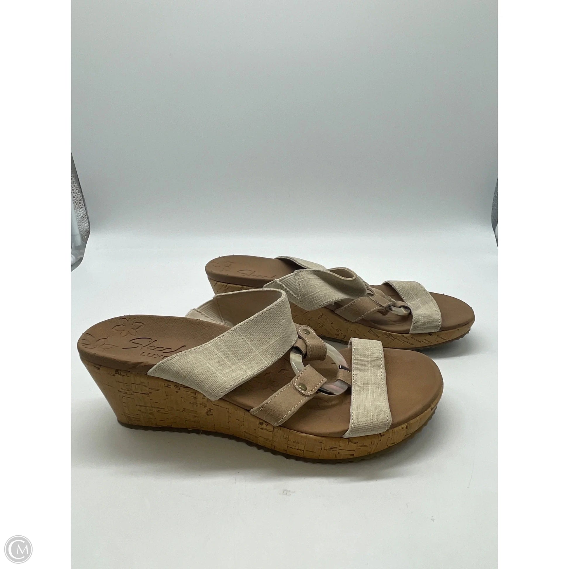 Sandals Heels Wedge By Skechers In Tan, Size: 8